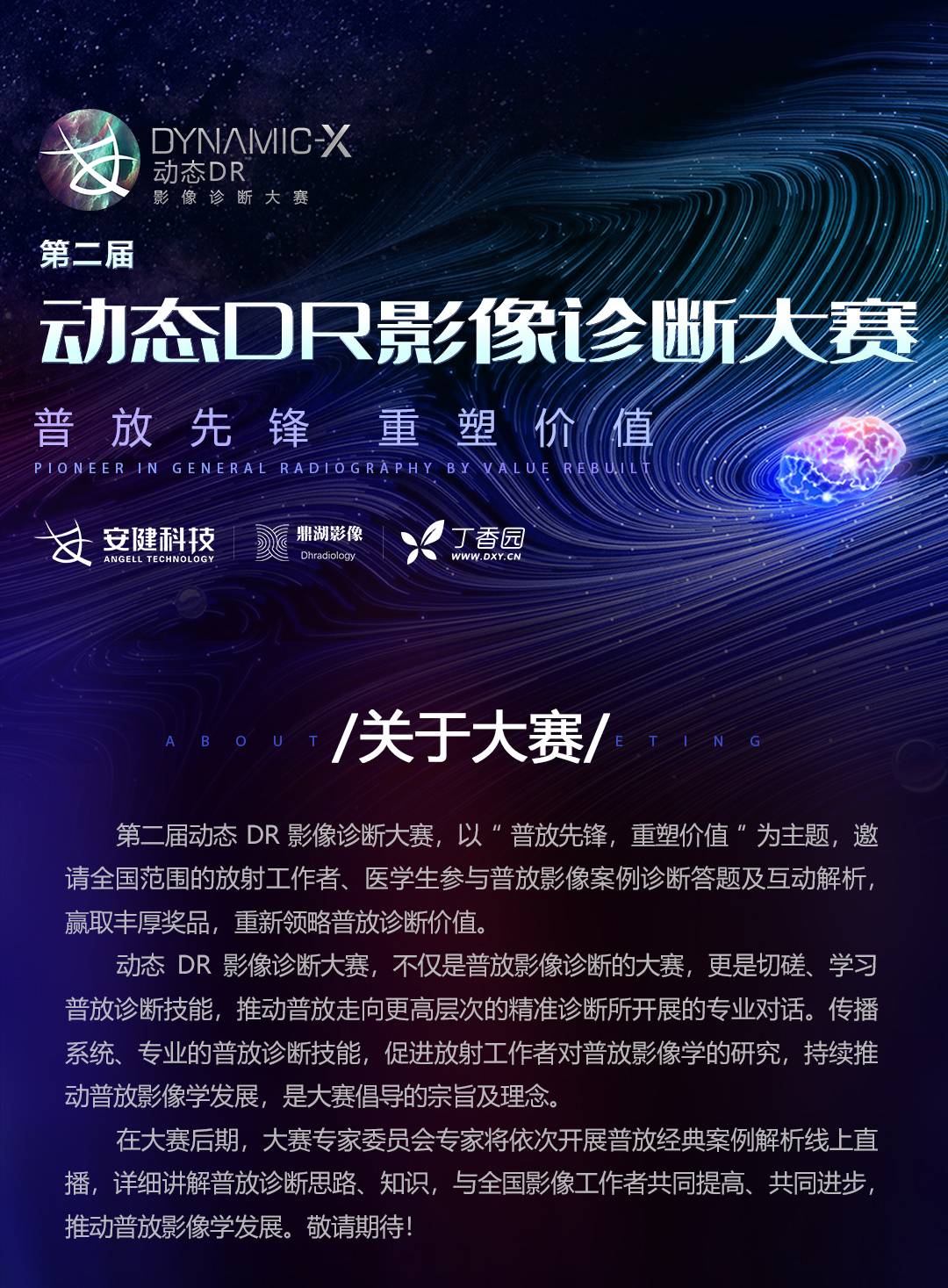 2019年,由亿万28入口网页版-亿万28网页在线玩-万28官网下载最新版-亿万e网址pg-亿万28pg电子-亿万28赏金女王-亿万28娱乐科技主办,鼎湖影像与丁香园协办的首届动态DR影像诊断大赛获得了广泛关注与巨大成功。大赛吸引了超过10万余放射工作者关注,共有超过4000家医院的4716人参赛答题,成为年度全网影响力最大、参与人数最多的专业医学影像赛事。更为重要的是,首届动态DR影像诊断大赛的成功举办,为全国的放射工作者搭建了一个切磋、学习普放诊断技能的平台,并有力促进了医学影像领域对普放影像学的关注,积极推动了普放影像学向前发展。