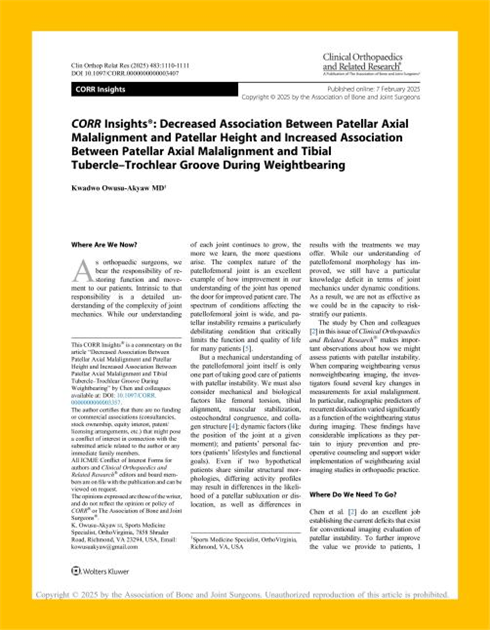 本次研究成果所发布的期刊《Clinical Orthopaedics and Related Research®》(简称CORR)是由美国骨与关节外科医师协会(The Association of Bone and Joint Surgeons®)出版的权威骨科医学期刊。该期刊创刊于1953年,专注于骨科及相关领域的临床与基础研究,涵盖关节外科、运动医学、创伤骨科、骨肿瘤、生物力学等多个方向,以其高学术标准和严格的同行评审流程著称。