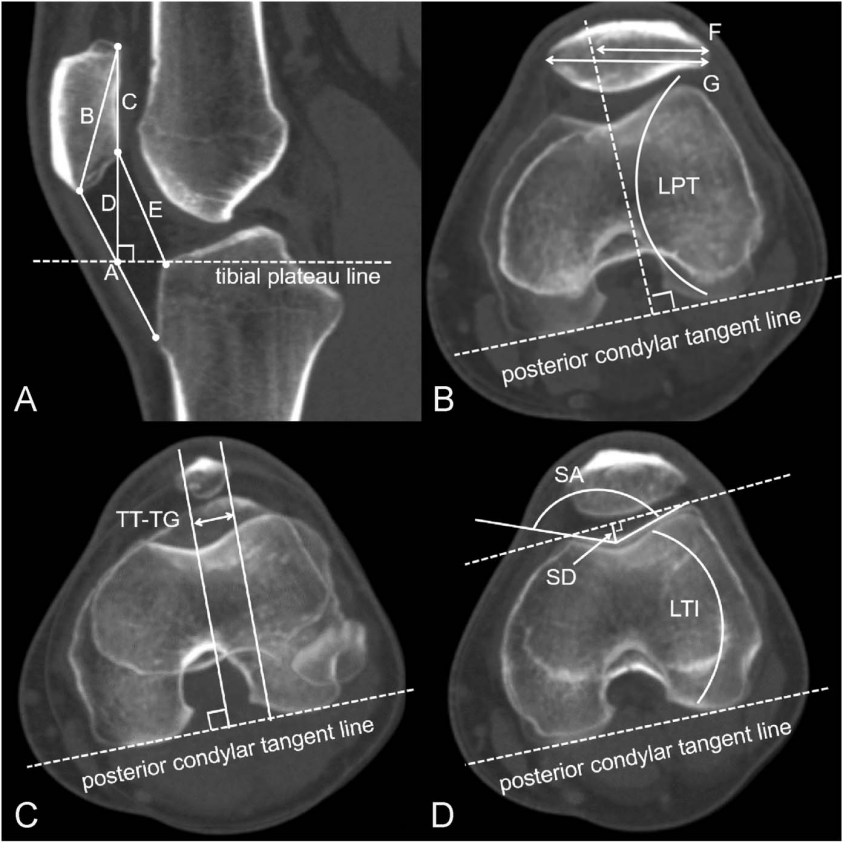 研究团队重点测量了髌骨的多个关键解剖学参数,包括髌骨高度、髌骨轴向错位(通过比塞特偏移指数和髌骨倾斜角度来评估)、胫骨结节-滑车沟(TT-TG)距离,以及髌骨沟形态(包括沟深度和沟角度)。所有测量结果由两名经验丰富的影像学专家独立进行,测量间隔至少为4周。