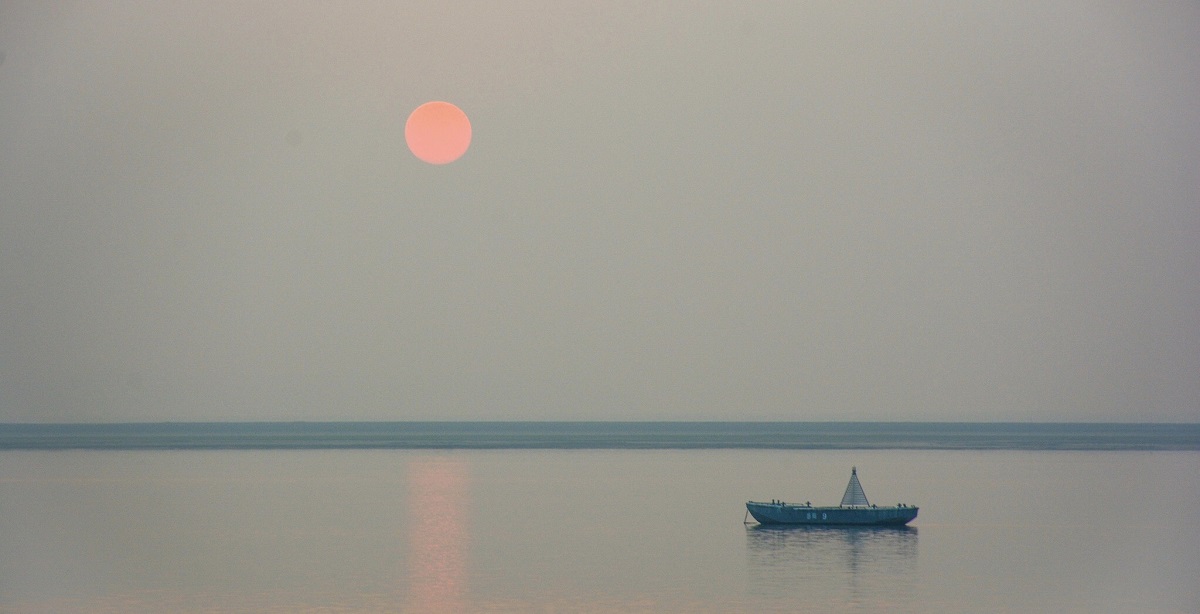 ▲洞庭湖畔,水天一色
